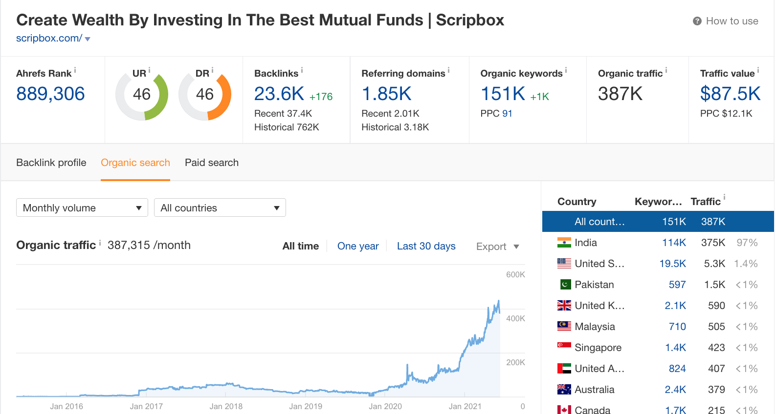 +1,890% organic traffic growth for Scripbox