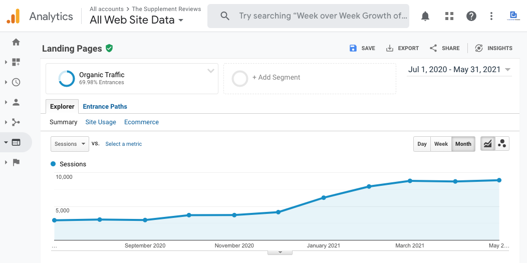 +157% organic traffic growth for The Supplement Reviews