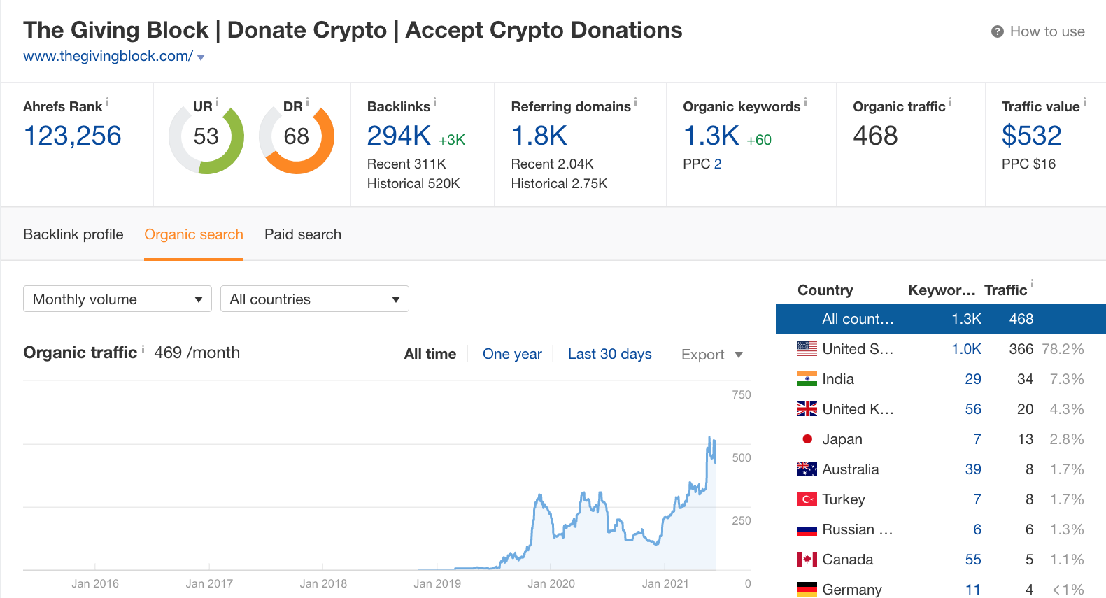 +80% organic traffic growth for The Giving Block