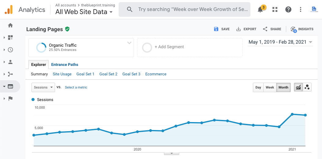 +260% organic traffic growth for The Blueprint Training